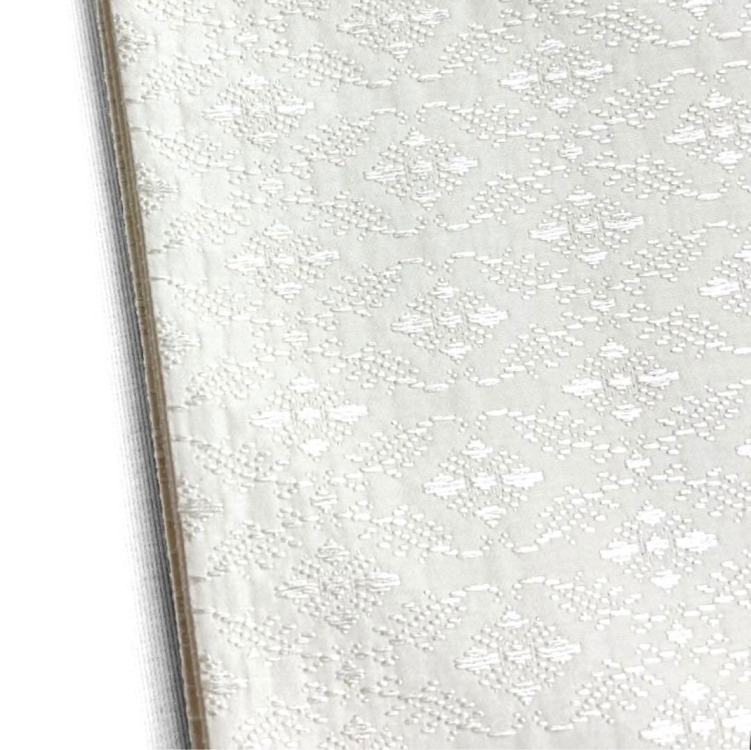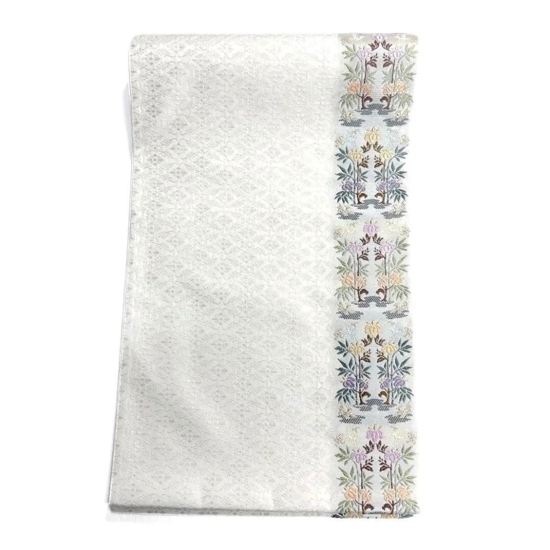 銀糸を交えた織り出しに縦に織られた金糸を交えた桐の花、鳳凰、竹の模様が美しい大変上品な逸品になります。