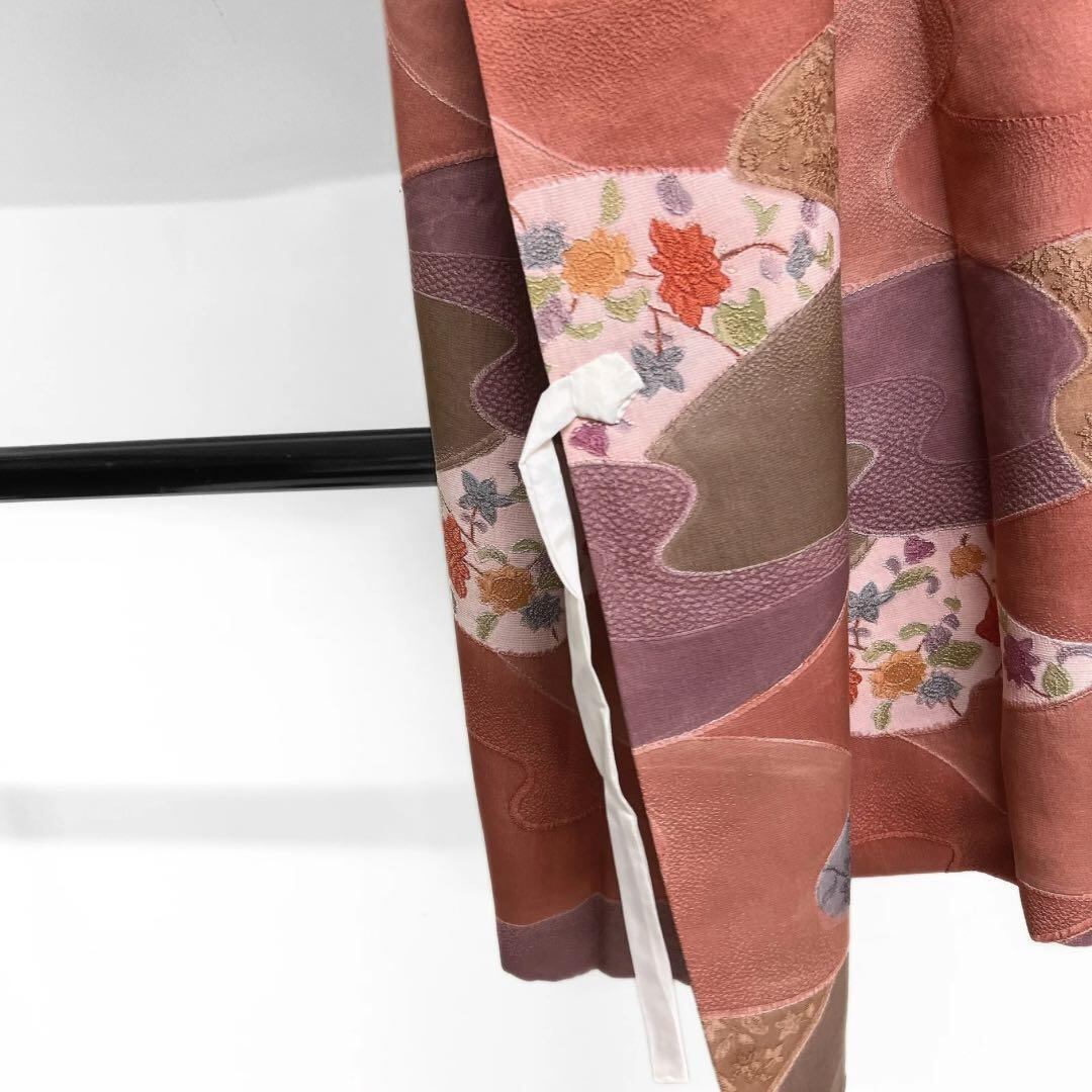 道長取りに花模様が地紋起こしを交えて描かれたお洒落なデザインの一着です。