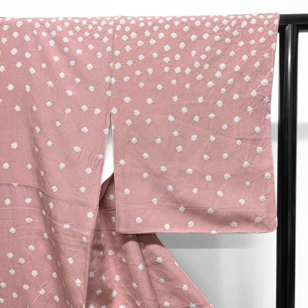 ベビーピンクにホワイトの絞りが可愛らしいデザインの一着です。