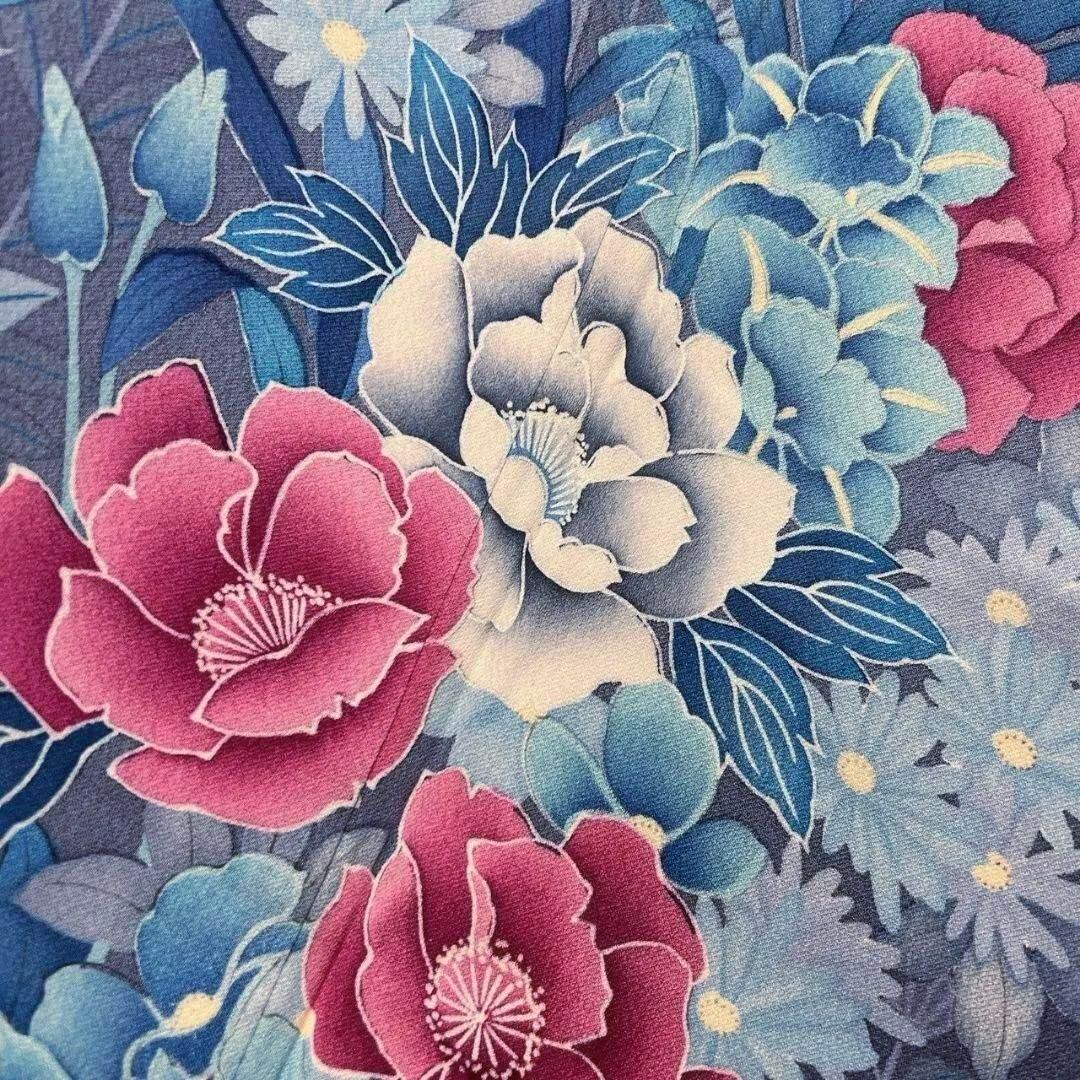 鮮やかな花模様と上品なお色味が美しい一着です。