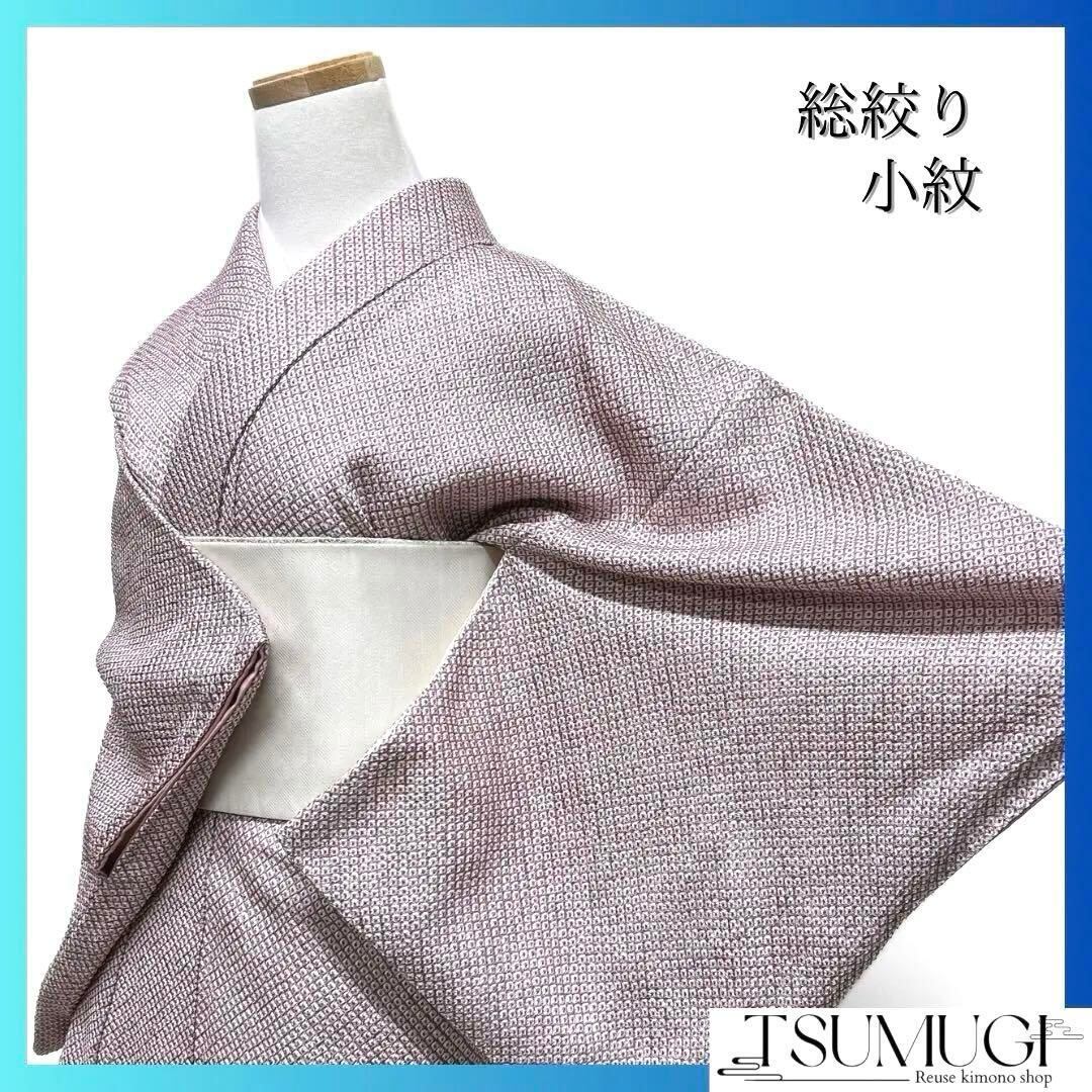 少し明るめの古代紫色地に白の総絞りがお洒落なデザインの一着です。