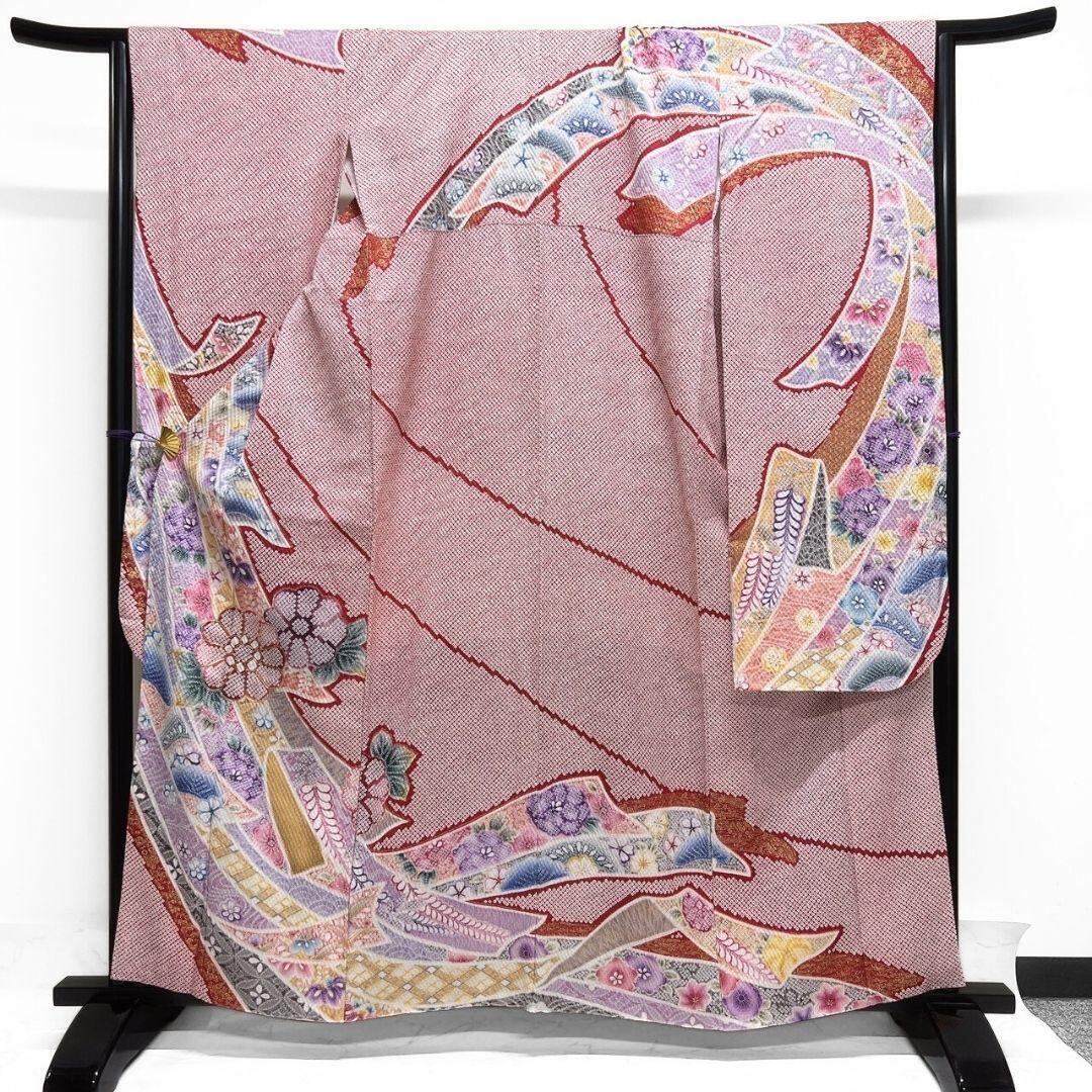 束熨斗に牡丹や藤、松模様がデザインされた一着です。