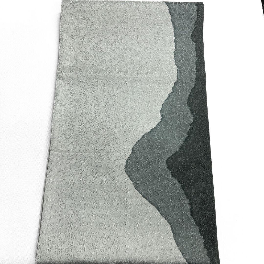 唐花模様に霞が描かれたグリーンカラーの袋帯です。