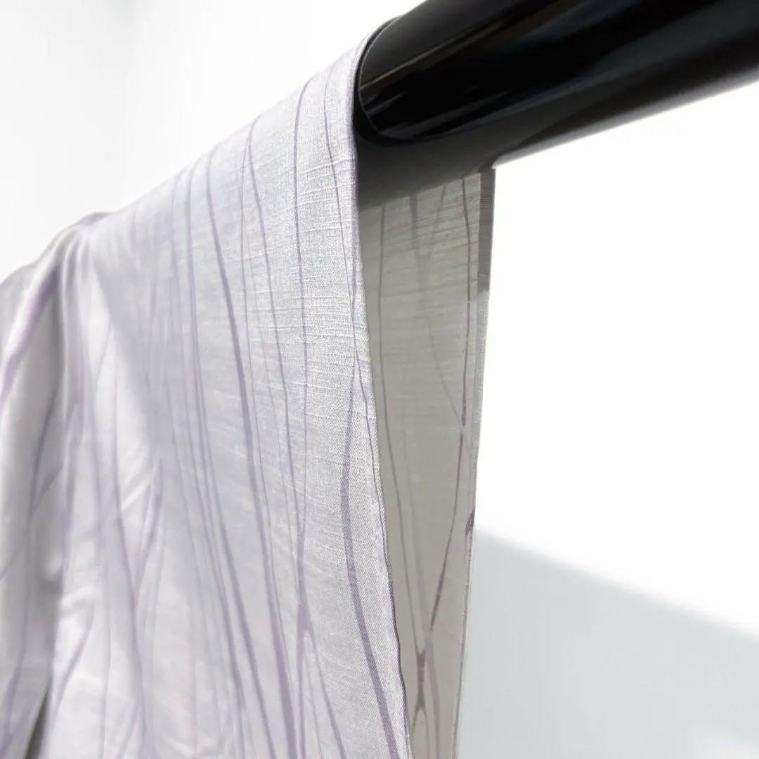 藤色を基調とした美しいパープルカラーの流線が美しい一着です。