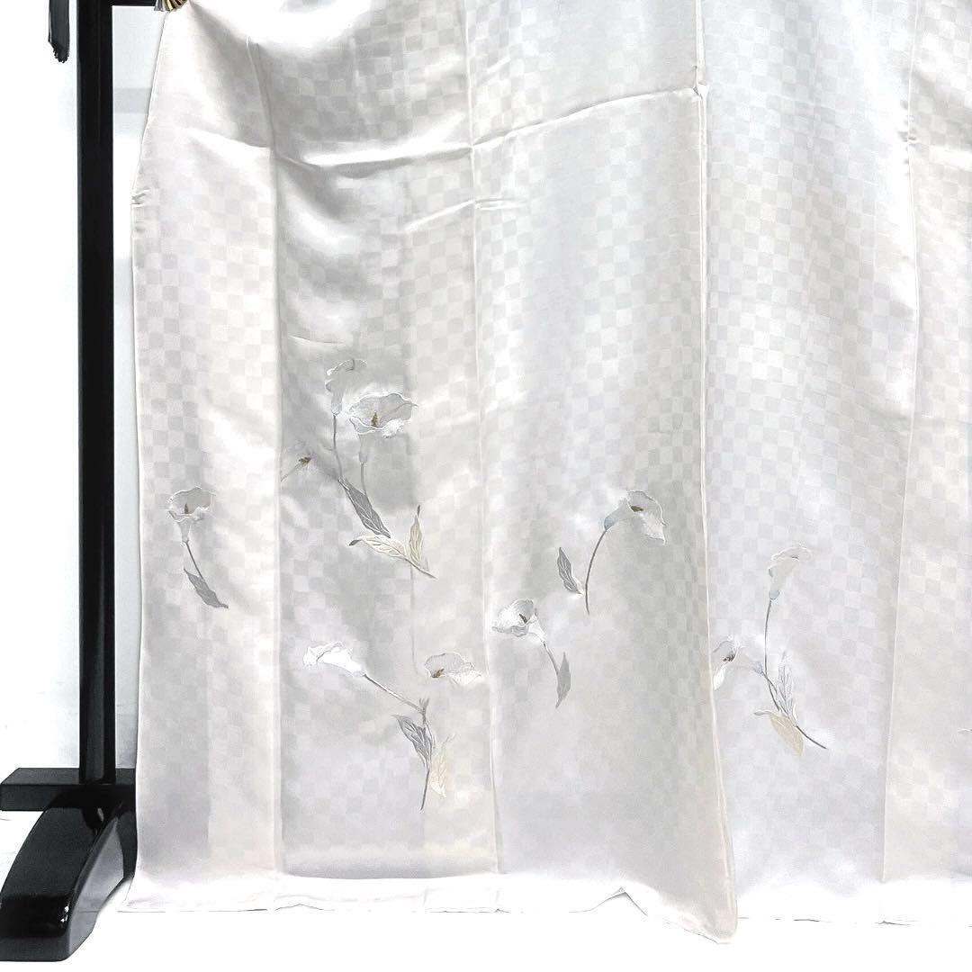 付け下げ 刺繍 カラー 市松 ホワイト 純白 華やか 着物 015a d