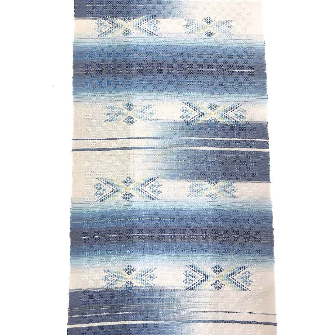 工房真南風 仲宗根めぐみ 名古屋帯 反物 花織 清藍 手織り 着物 015a d