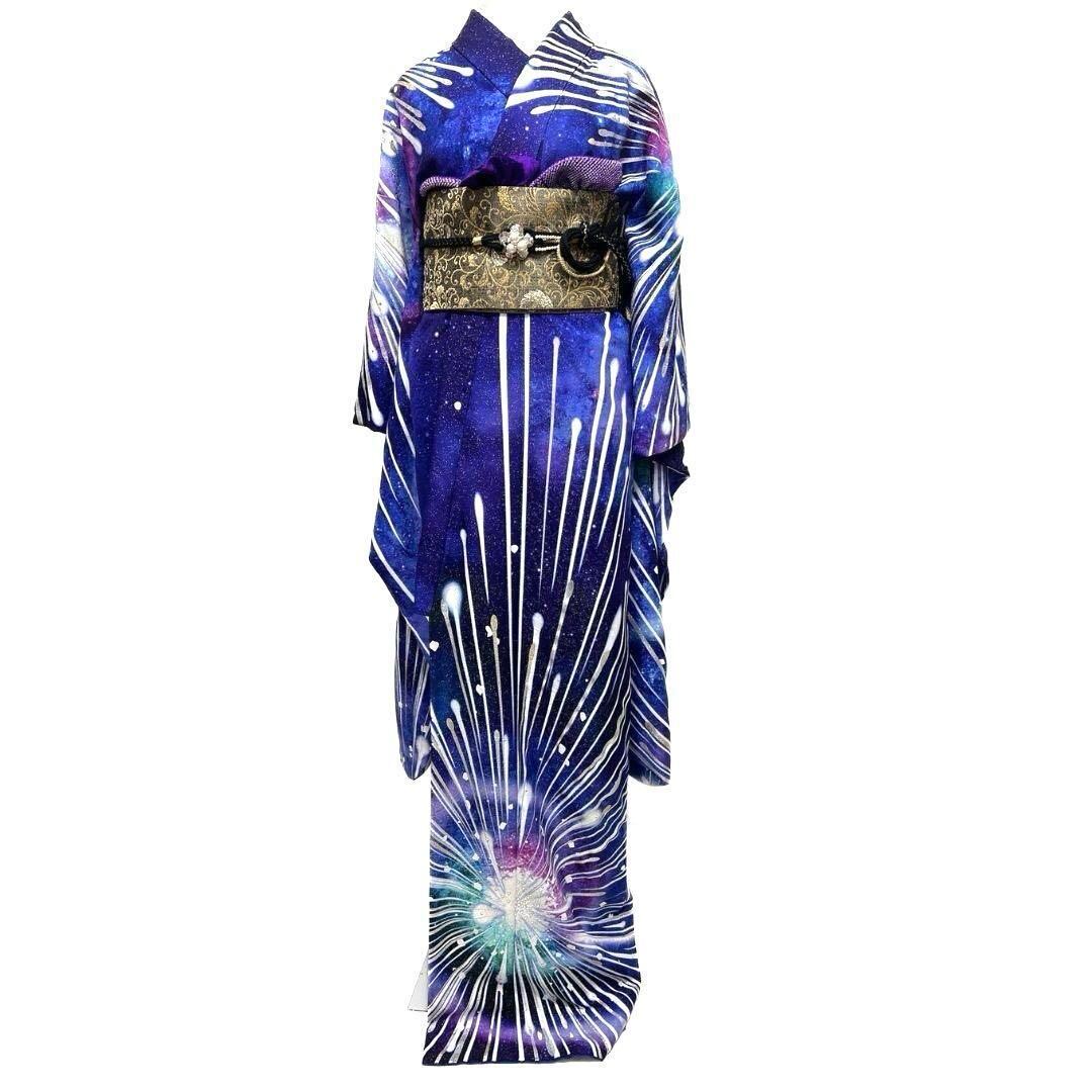 銀通し ラインストーン 銀河 惑星 宇宙 振袖 着物 021a p