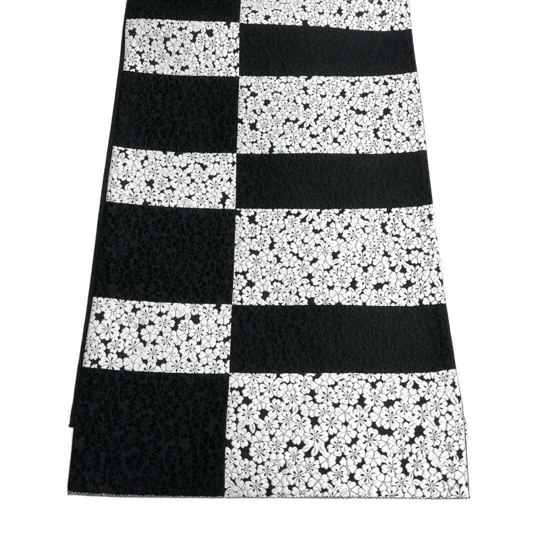 黒地に白と薄いピンクで織られた桜の文様が華やかでお洒落なデザインの一着です。