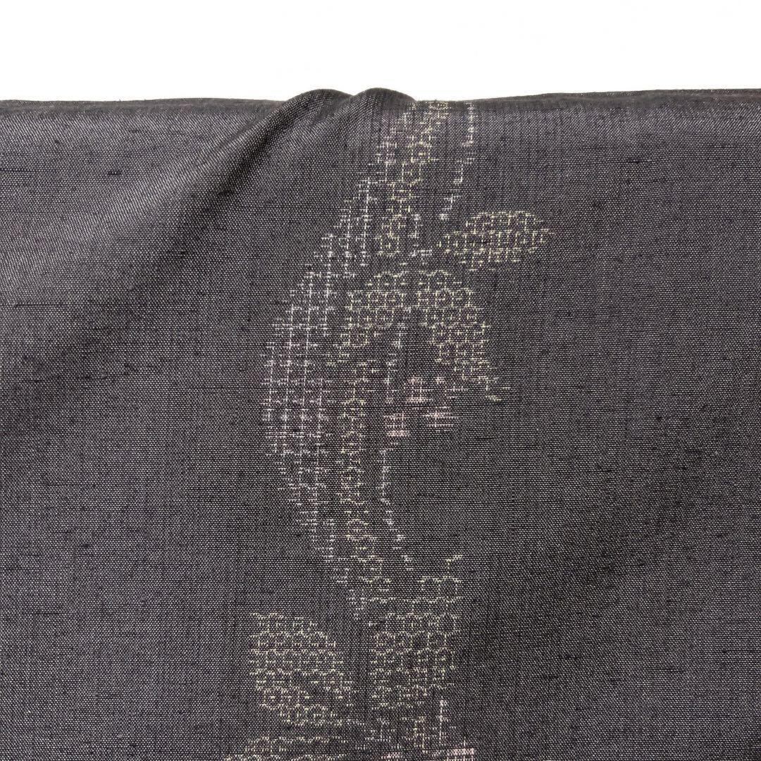 グラデーションのグレーの紬地に縦に織られた南天の文様がお洒落なデザインの一着です。