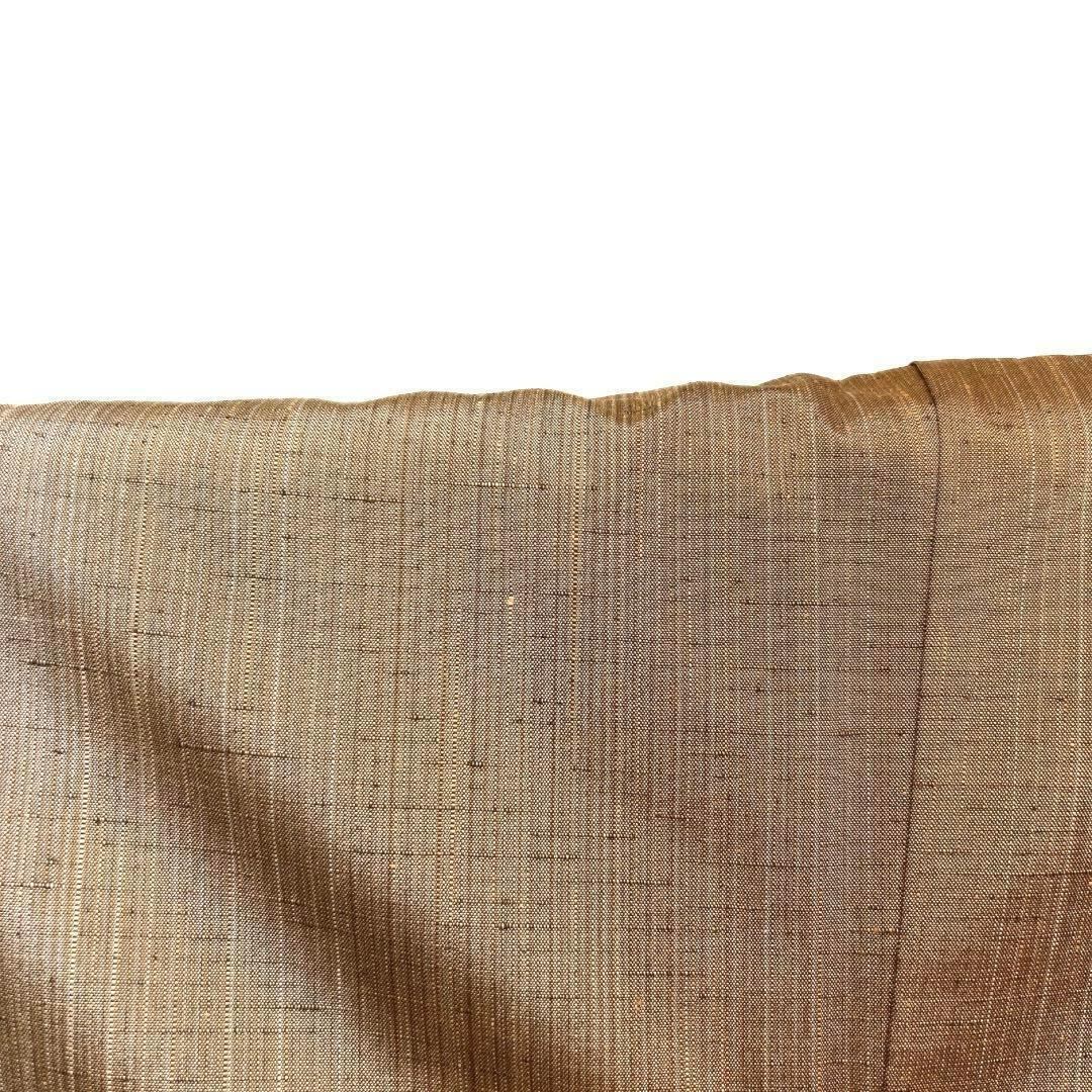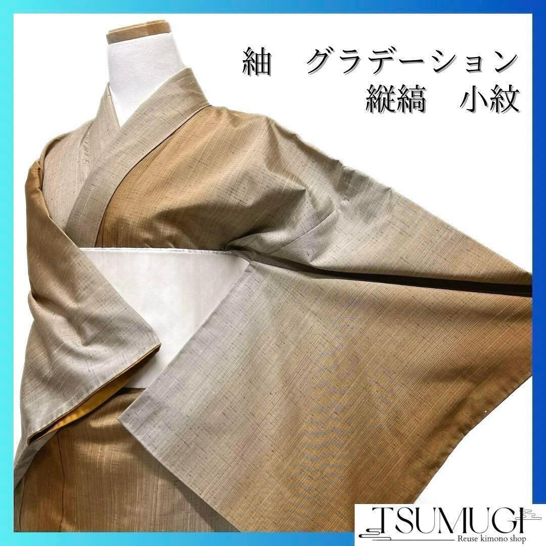 くすみベージュとブラウンのグラデーションの縦縞模様が織られたお洒落なデザインの一着です。