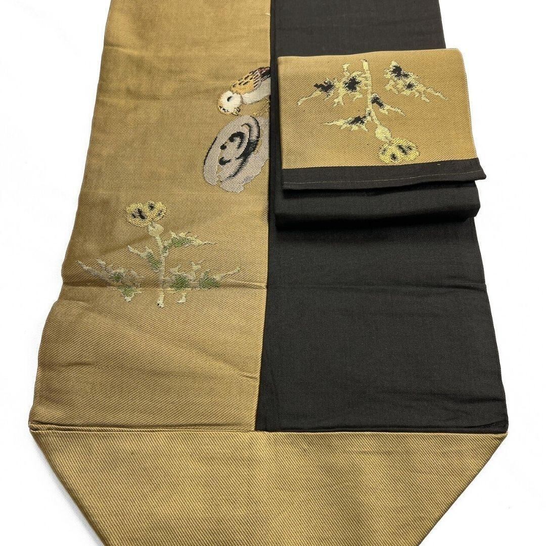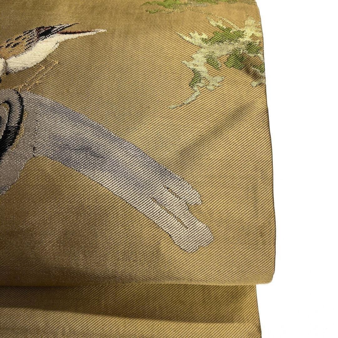 アンティークのすずめと花模様が織り出された名古屋帯です。