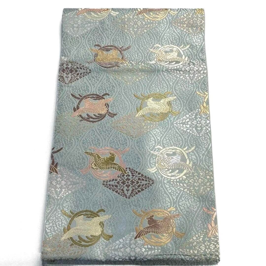 唐織で立涌や鳥紋、花菱が織り出された袋帯です。