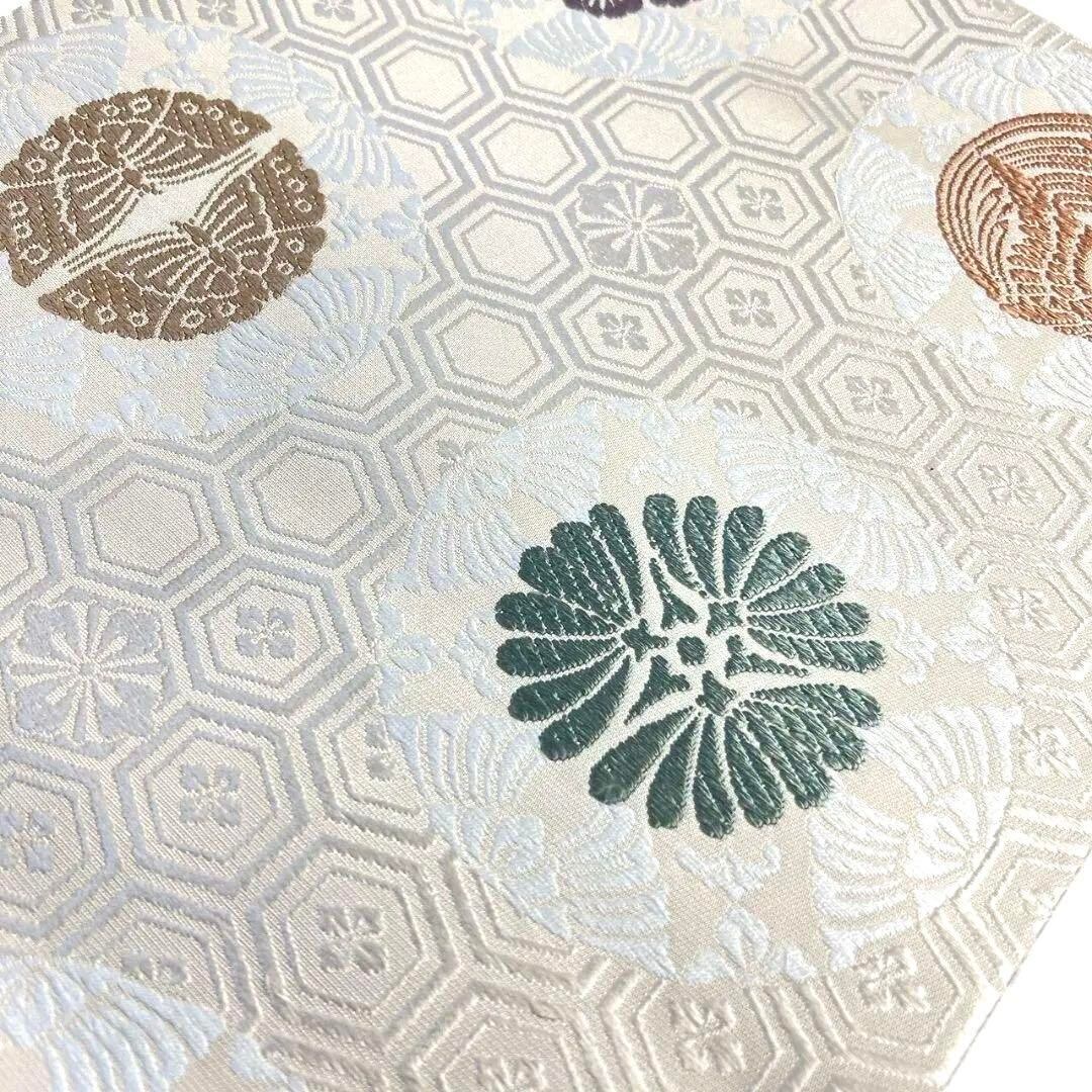 亀甲に蝶紋や桐紋、鳳凰紋が織り出された袋帯です。