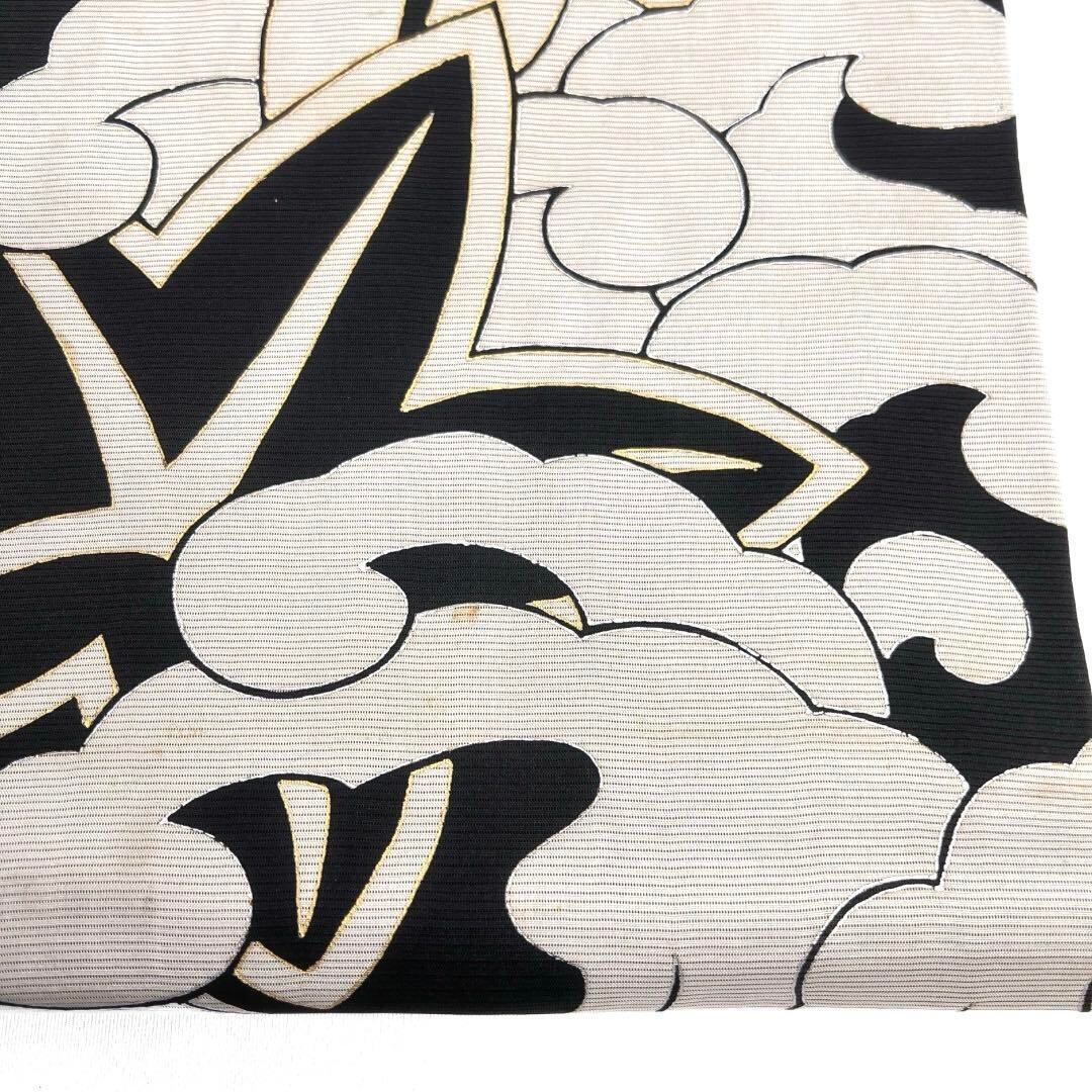 黒地に白と金彩で描かれたモノトーンの波と楓が描かれたお洒落なデザインの一着です。