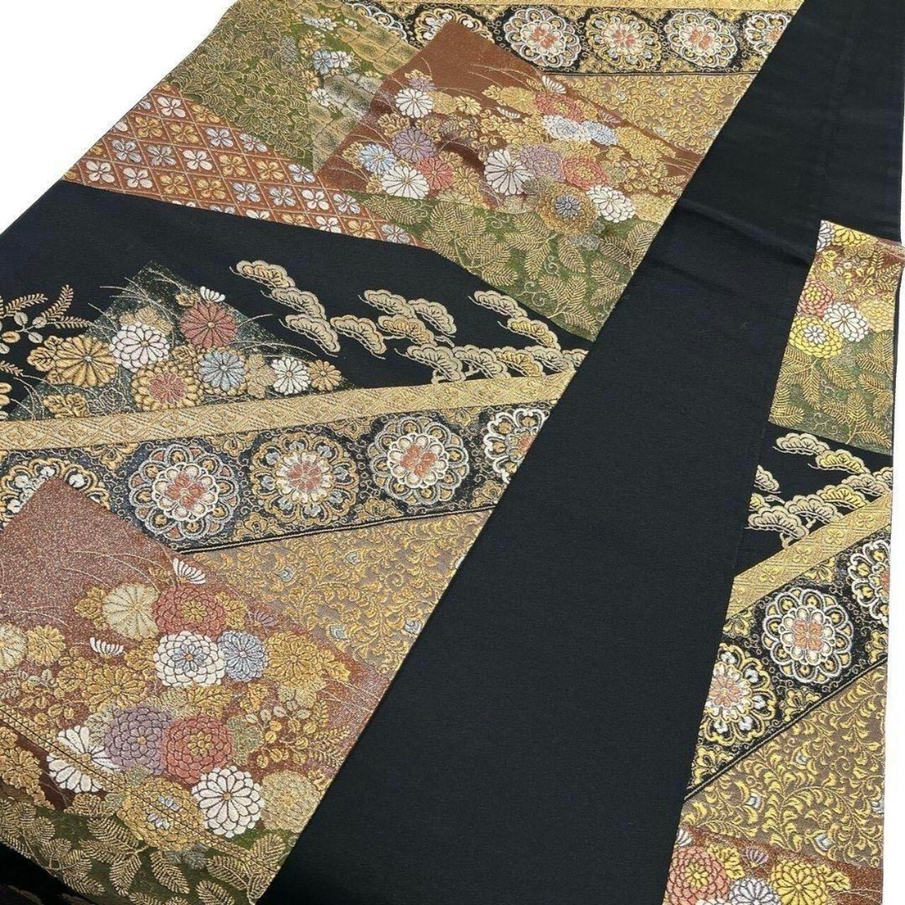 黒地に金糸を交え織り出された花紋、花菱が美しいデザインの一着です。