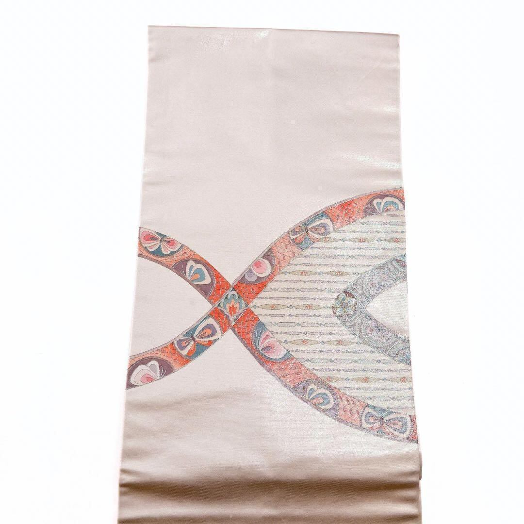 熨斗に唐花と華紋に蝶が描かれた名古屋帯です。