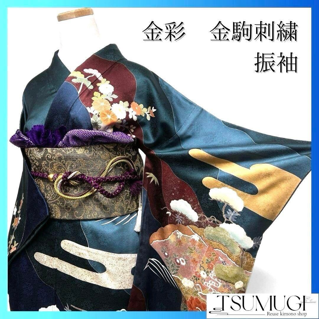 金彩や金駒刺繍があしらわれた振袖です。
