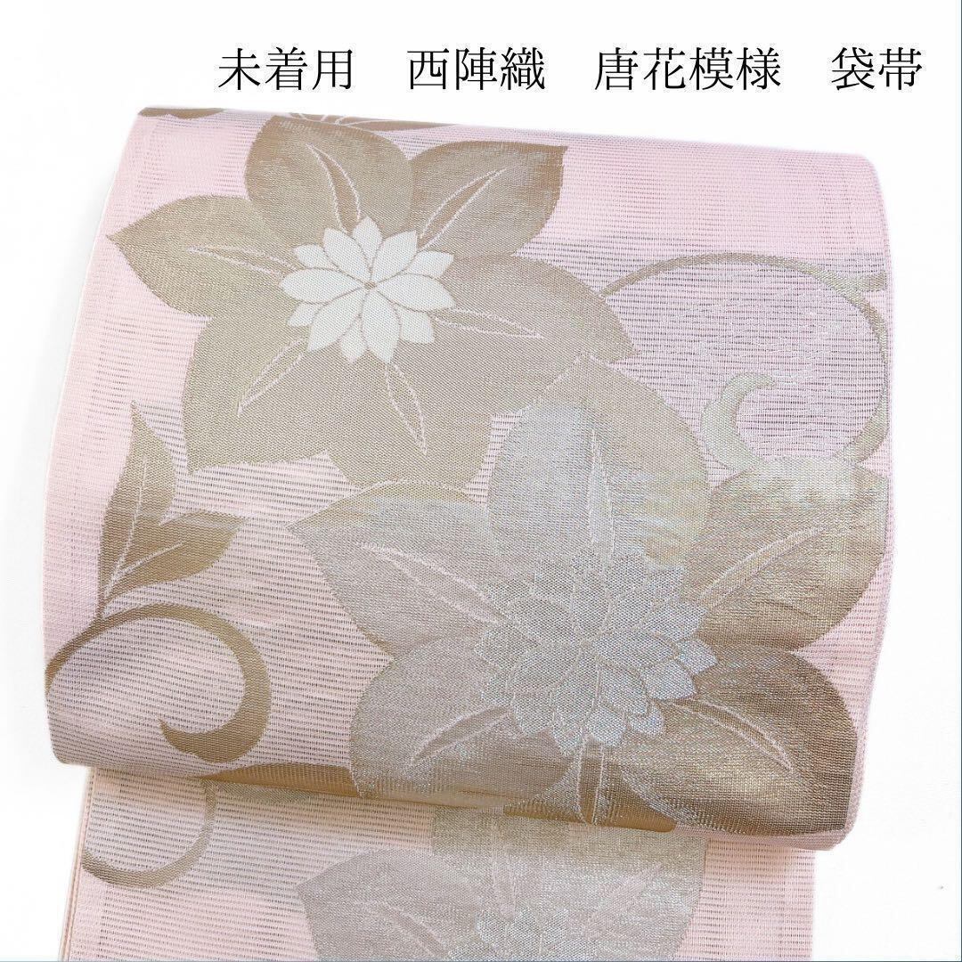 未着用、西陣織のベビーピンクの夏用袋帯です。