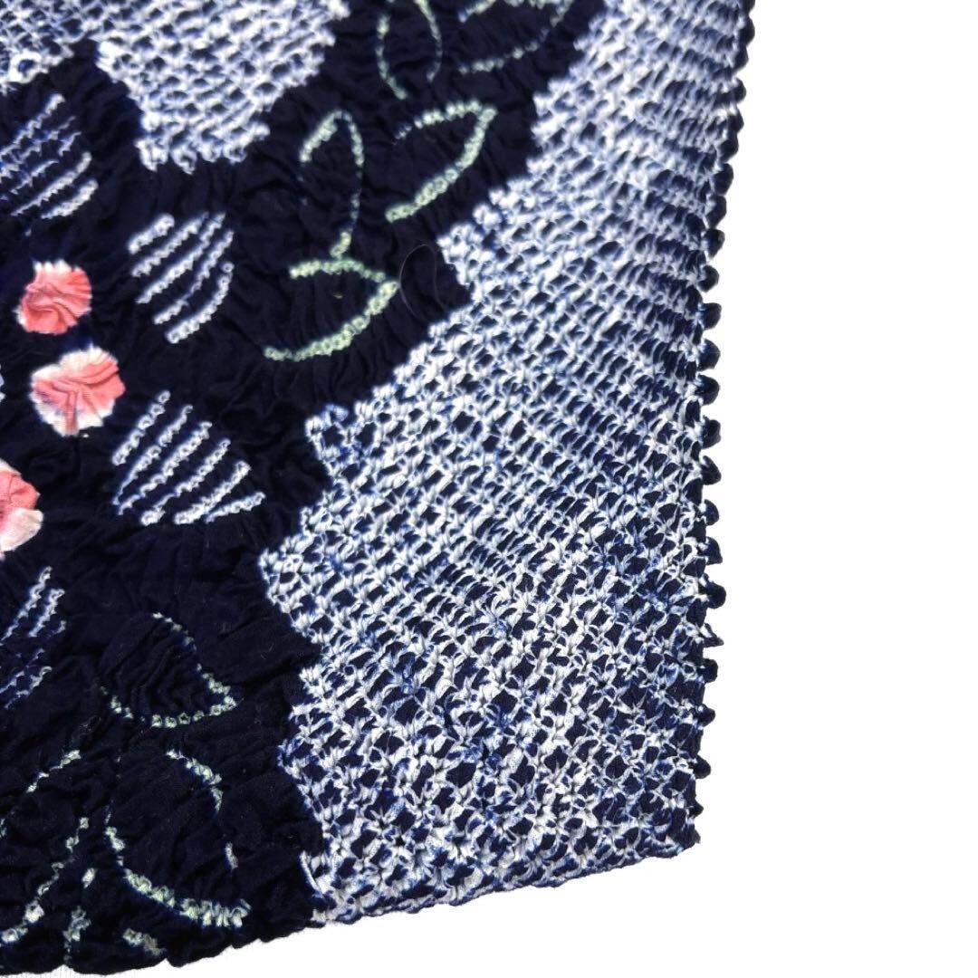 藍色に有松鳴海絞りで描かれたリーフと花模様がお洒落なデザインの一着です。