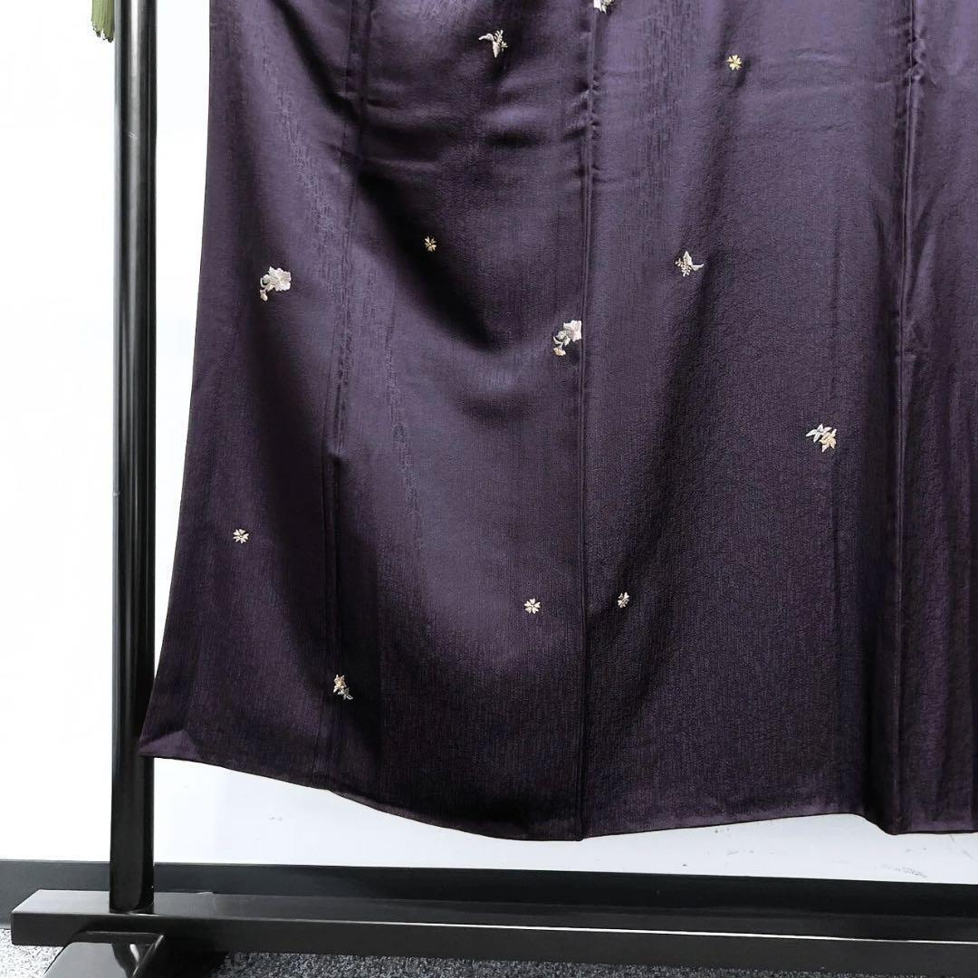 深い紫色に金糸があしらわれた花模様の刺繍が上品な一着です。