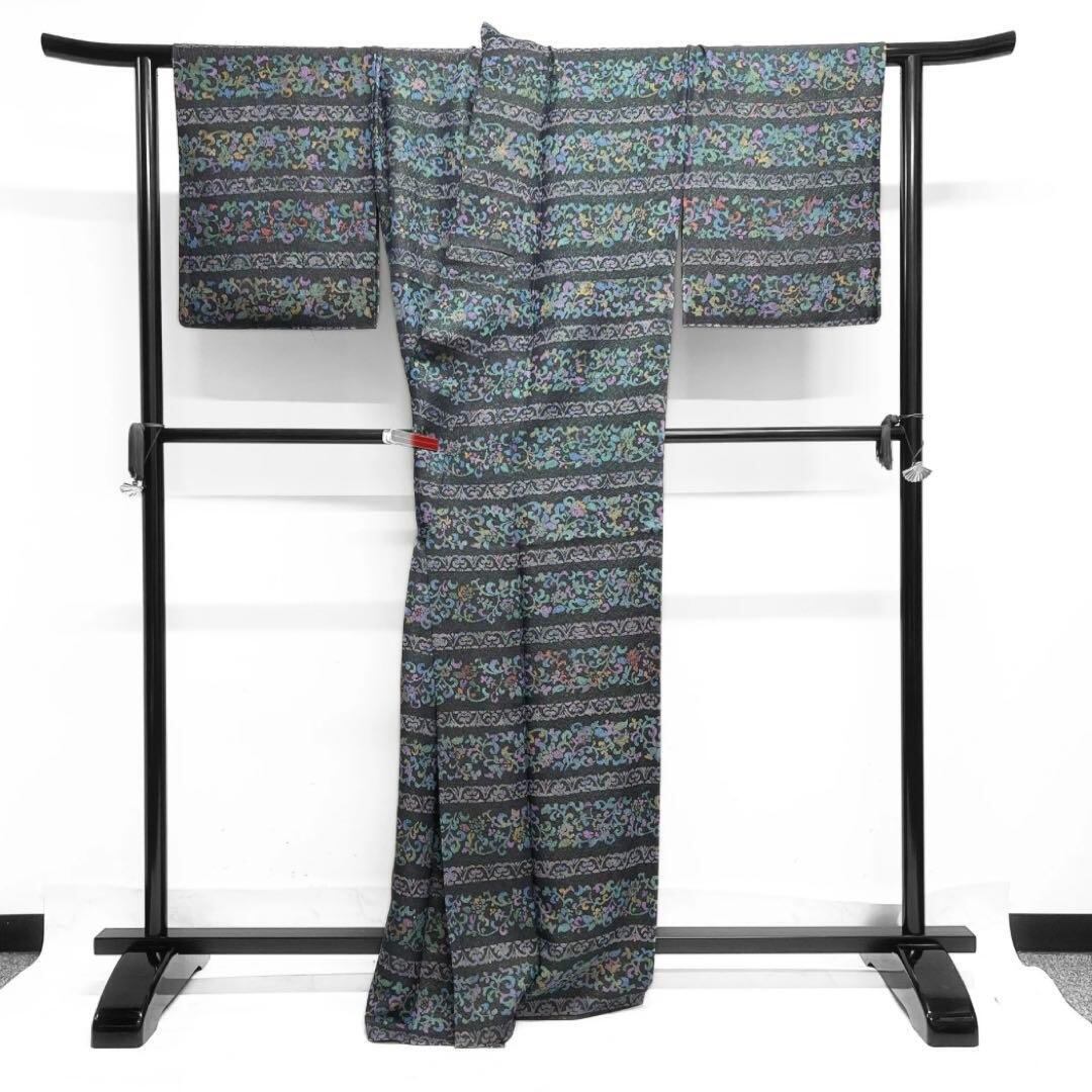 小紋 単衣 唐草 唐花 カラフル 錦糸通し 着物 032a d