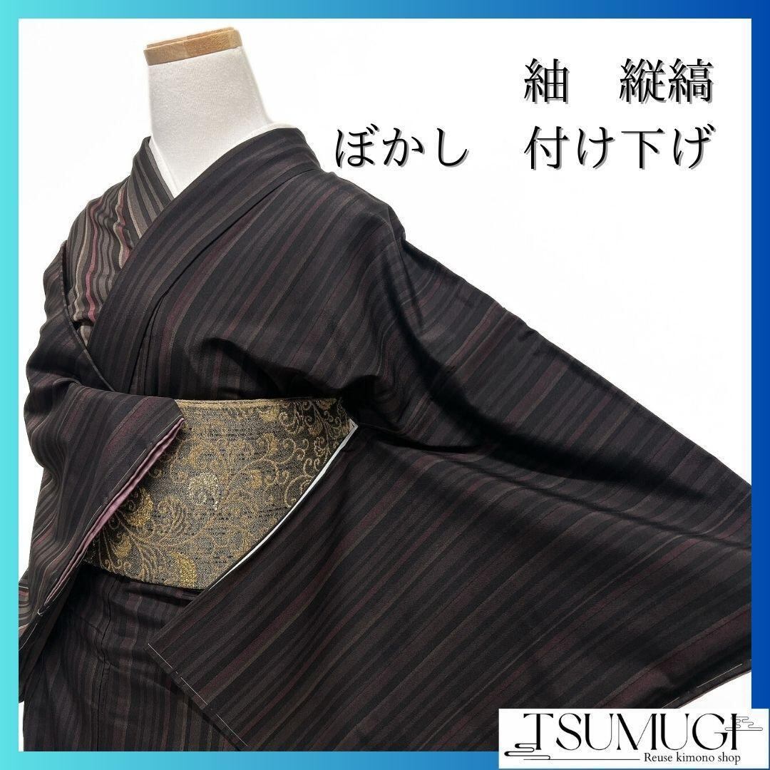 未着用、紬地に縦縞とぼかしがデザインされた付け下げです。