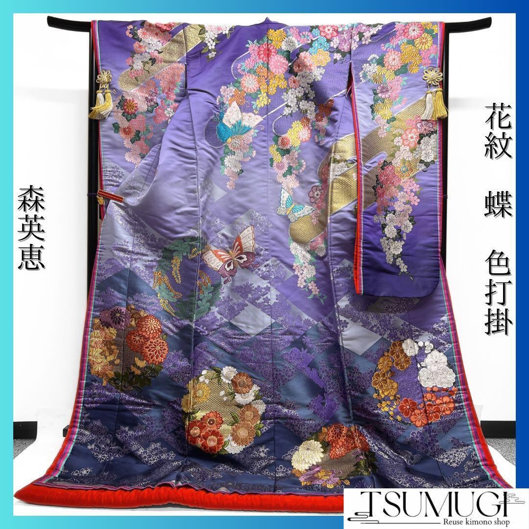 森英恵 HANAE MORI 色打掛 花紋 蝶 ヱ霞 菱 着物 032a① d