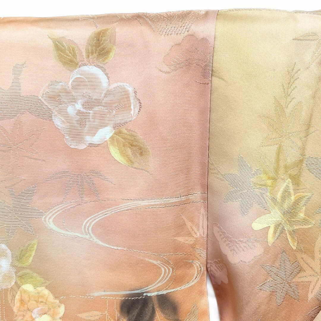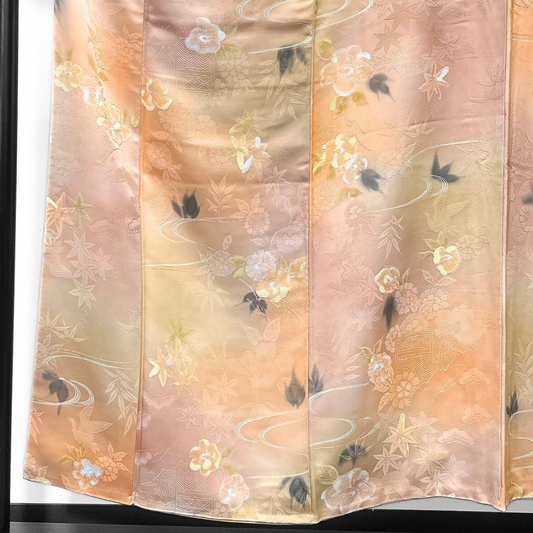 鶴や楓、菊の地紋に合わせて染められた文様がお洒落な一着です。