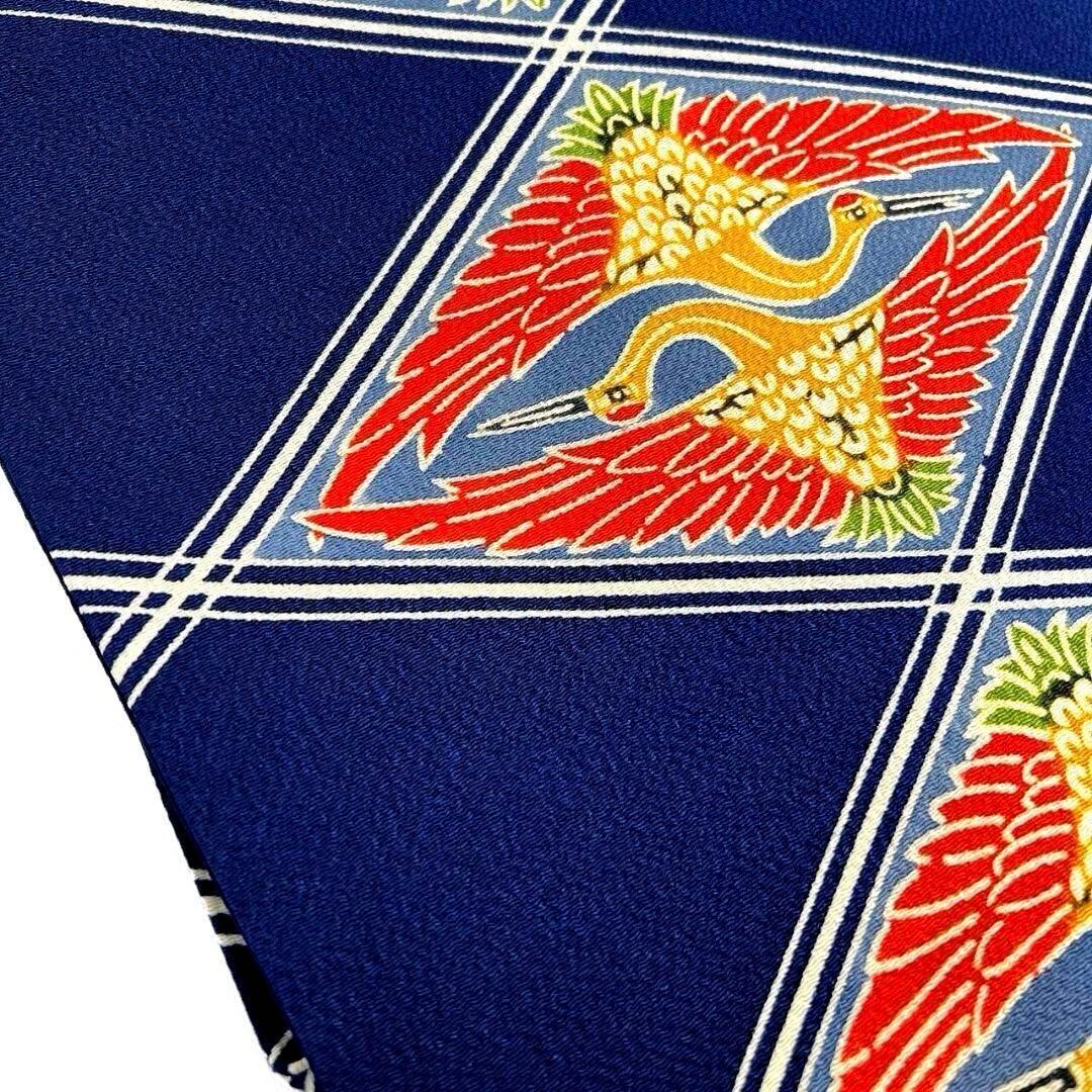 菱に双鶴紋が本紅型染の鮮やかで美しい風合いでデザインされた1着です。