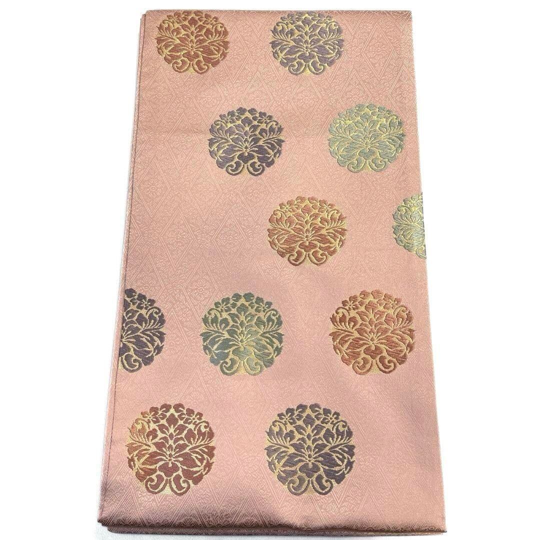 未着用、唐織があしらわれた花菱と花紋模様の袋帯です。