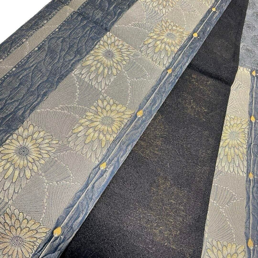 流線が細やかなネイビーの糸でデザインされ、金糸があしらわれた菊花が華やかな1着です。