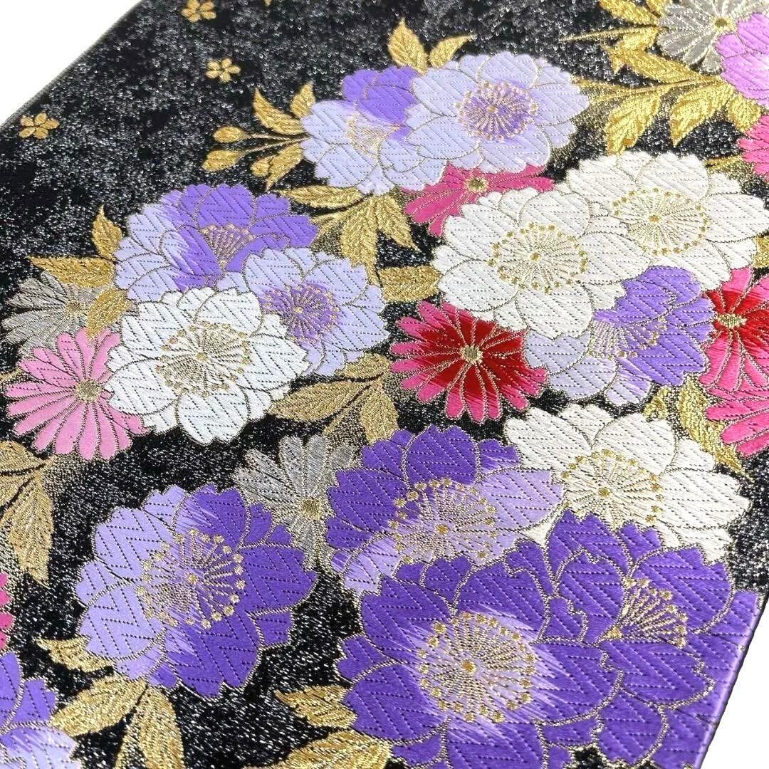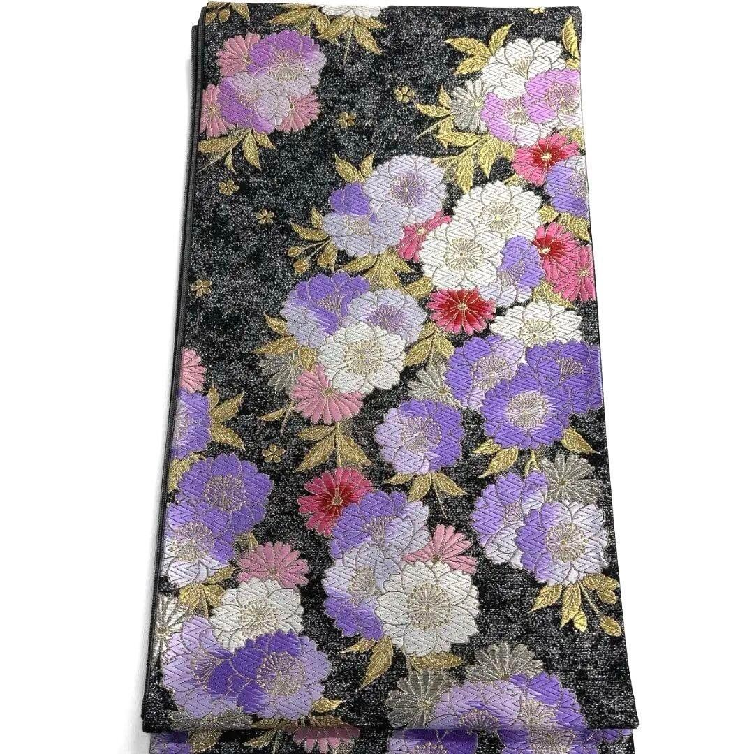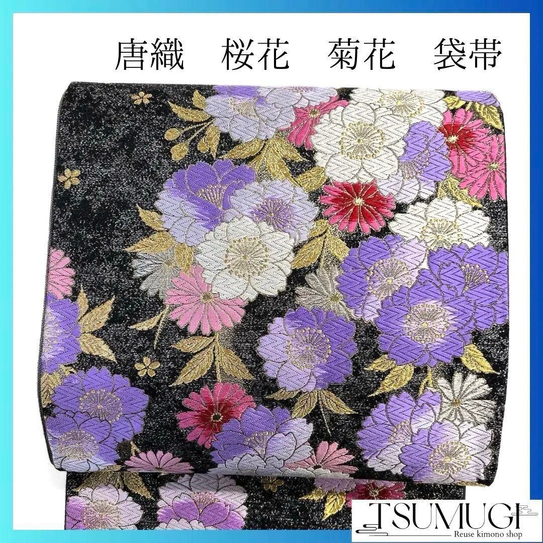 唐織で桜花模様や菊花が織り出された袋帯です。