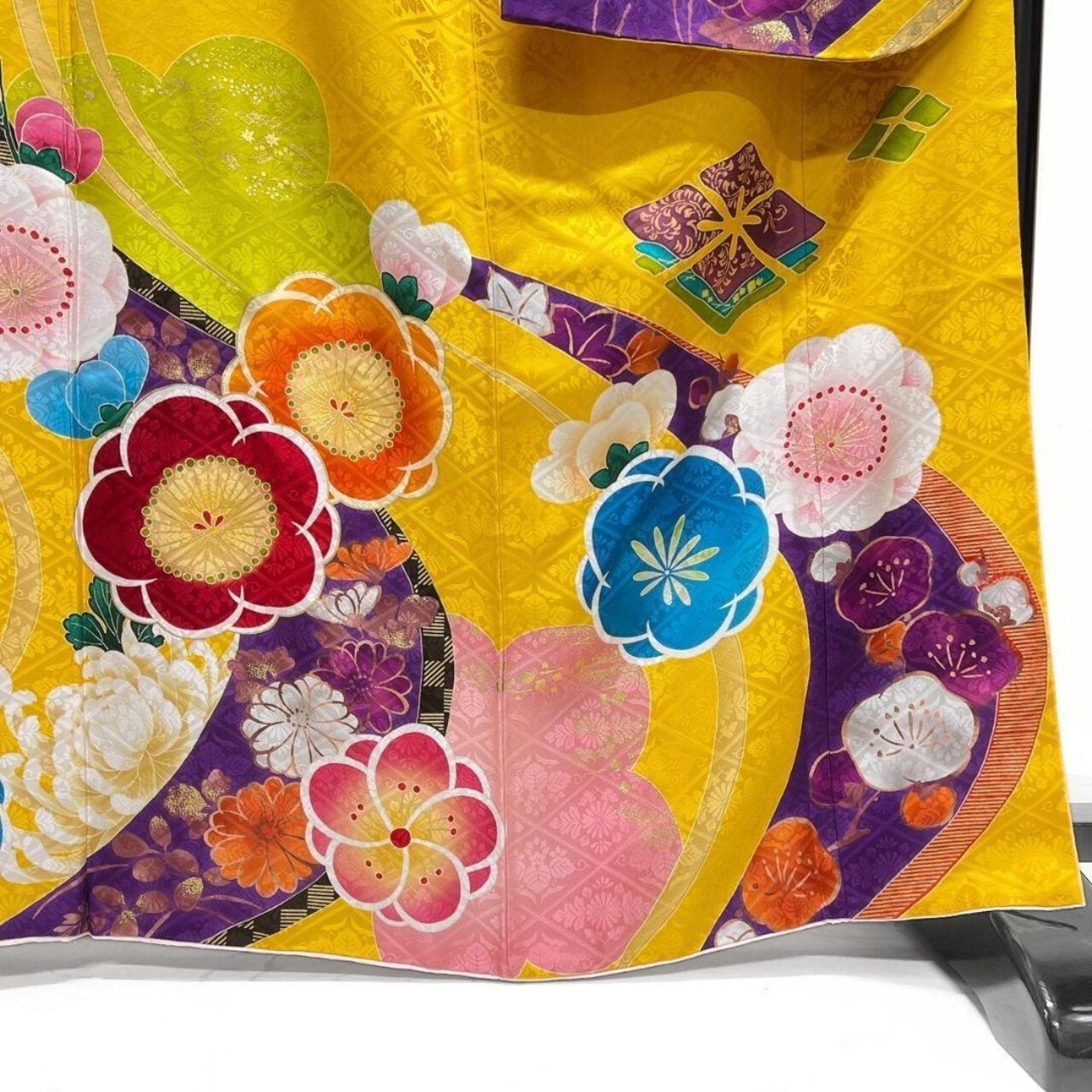 梅花や乱菊、桔梗が鮮やかなお色味で描かれた一着です。