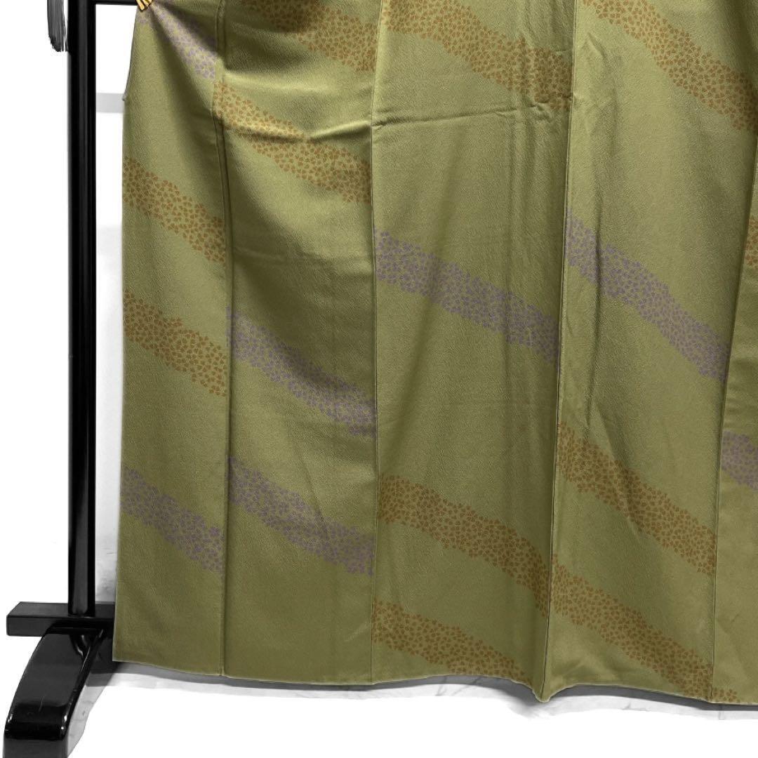 カーキグリーンの地に斜め縞で描かれた桜吹雪の文様がお洒落なデザインの一着です。