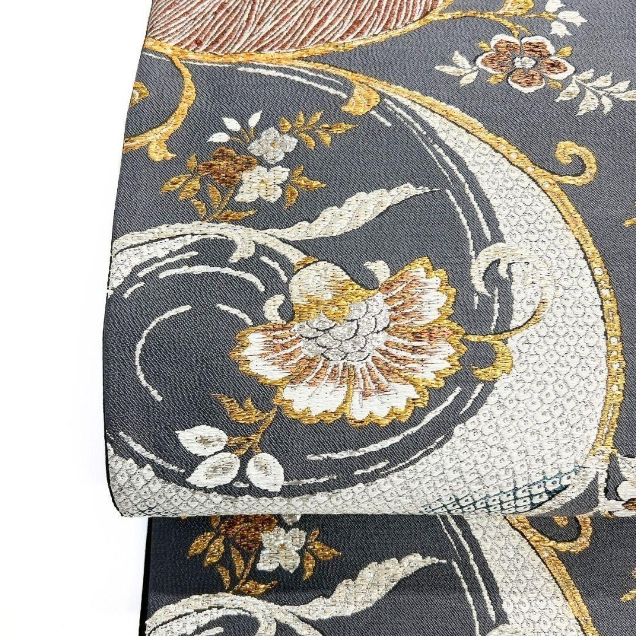 錦糸を交え織り出された抽象模様と花模様が美しい1着です。