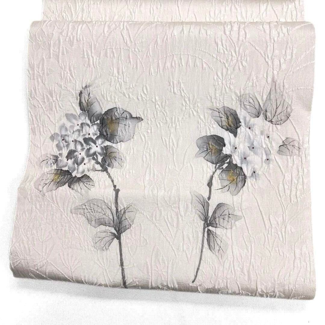 膨れ織で桔梗が織り出された花模様の袋帯です。