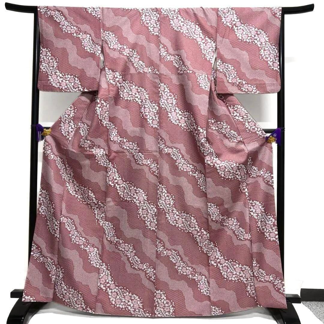 くすみピンクに細やかな辻ヶ花模様と伝統和模様が美しい洗える着物です。