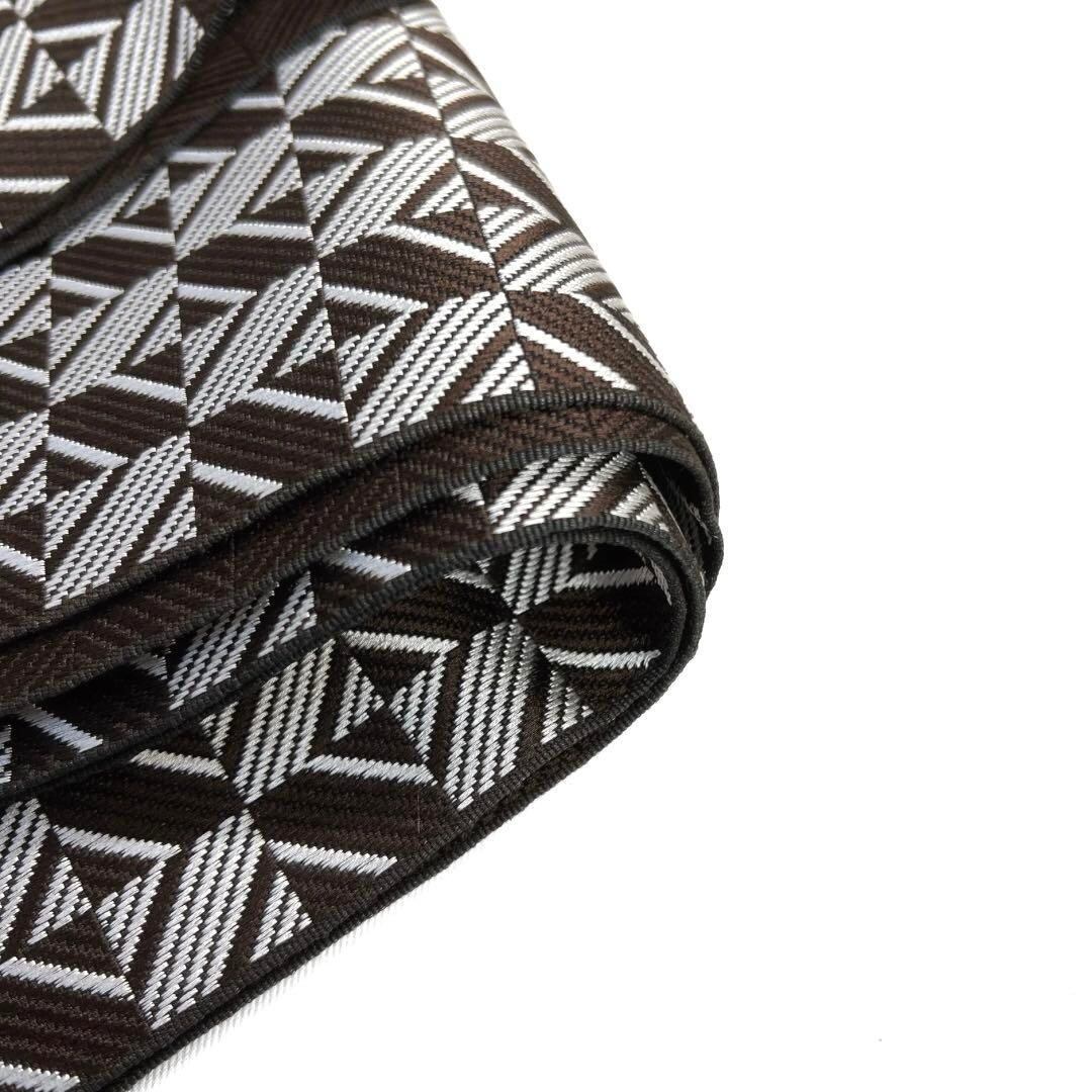 深いブラウンとホワイトで織られた幾何学模様の変わり市松文様がお洒落な雰囲気の一着です。
