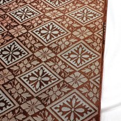 花菱の袋帯です。くすみのあるピンクと深い赤紫色のグラデーションに花菱模様が鮮やかなに描かれた