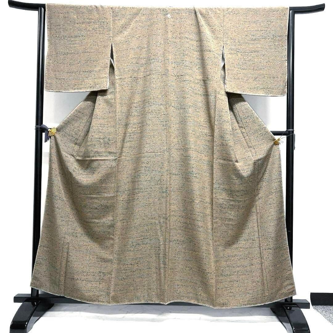 未着用、横縞に抽象模様が描かれた陶彩染の小紋です。