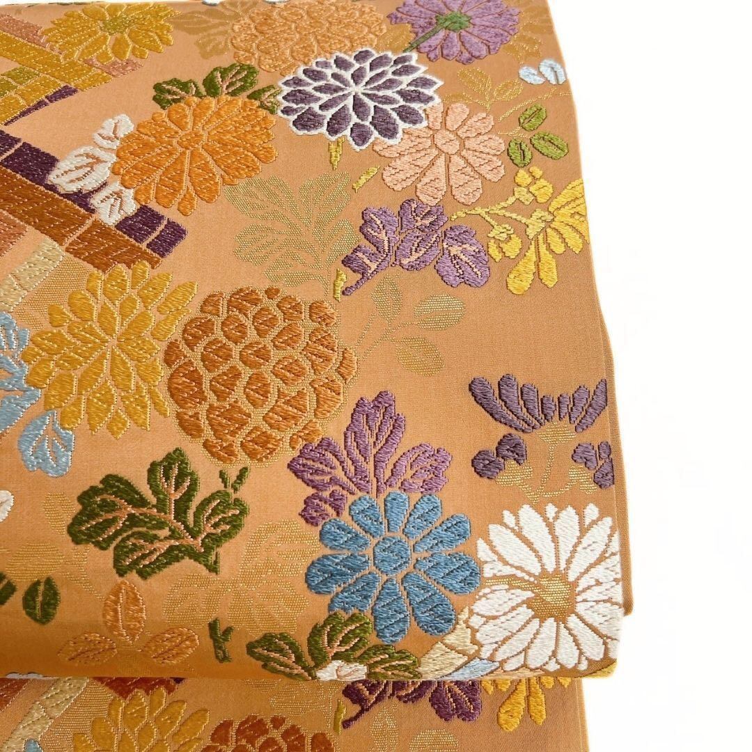 唐織で菊花や唐花模様、萩が織り出された袋帯です。