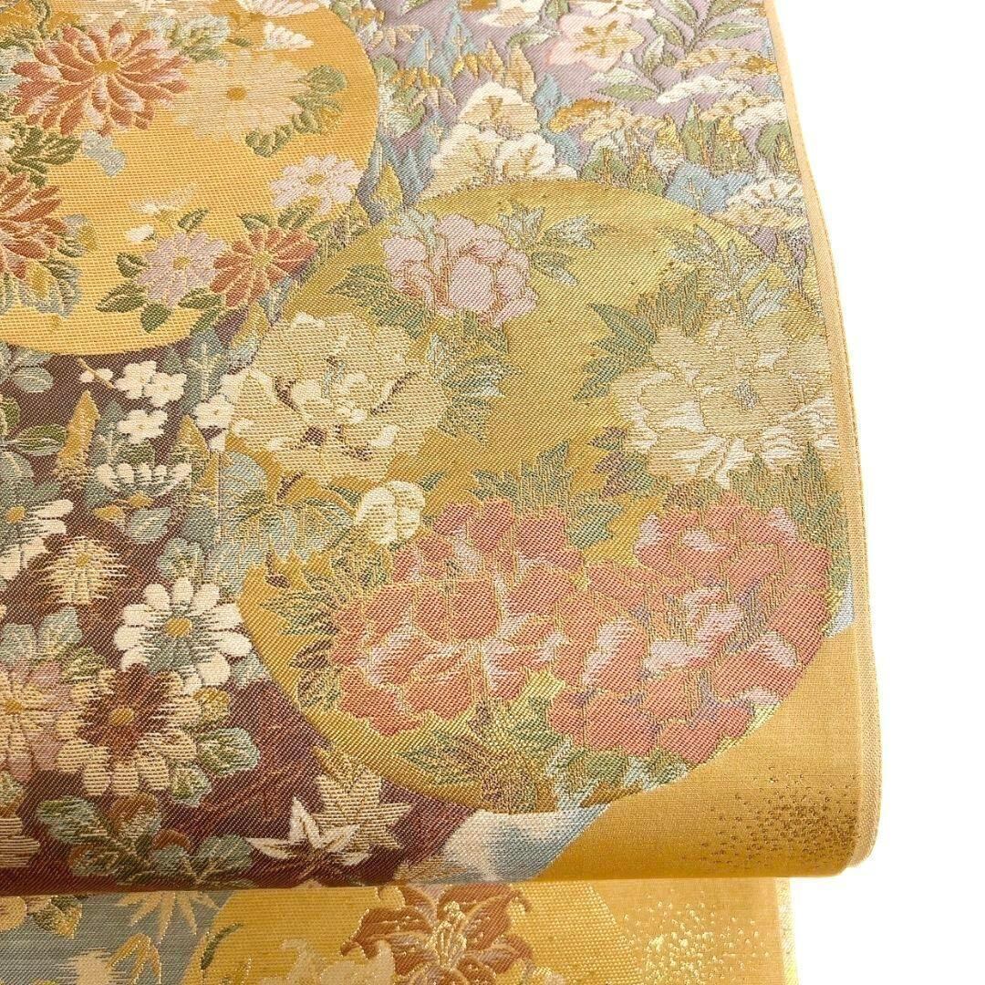 扇に華紋や草花が繊細に織り出された袋帯です。