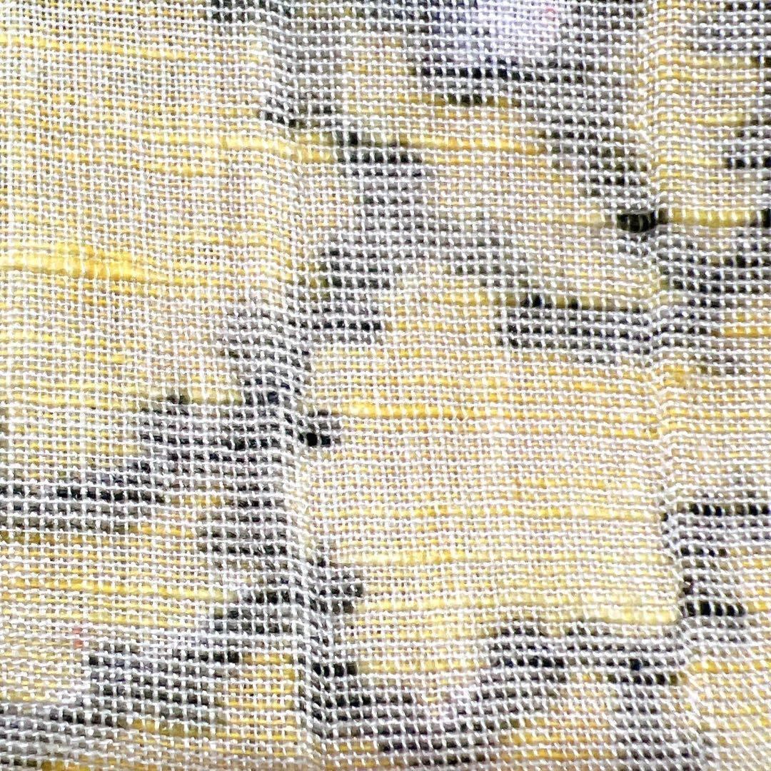 しゃりしゃりとした生地感の紬のグレー地に黄色とピンクの薔薇模様が目を惹く華やかでお洒落な一着です。