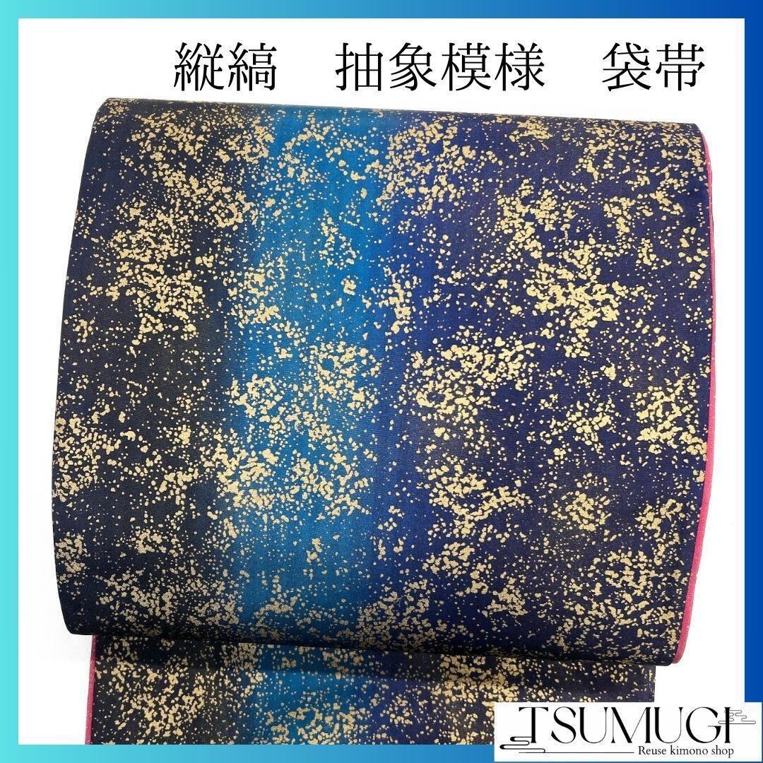 縦縞に抽象模様が金彩でデザインされた袋帯です。