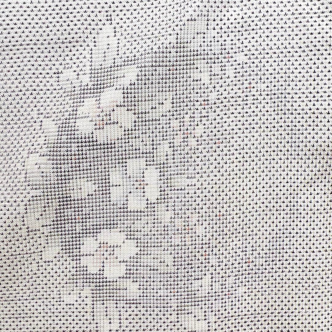白大島紬の地に細やかに織られた花紋と葉影花影の花紋がお洒落なデザインの一着です。