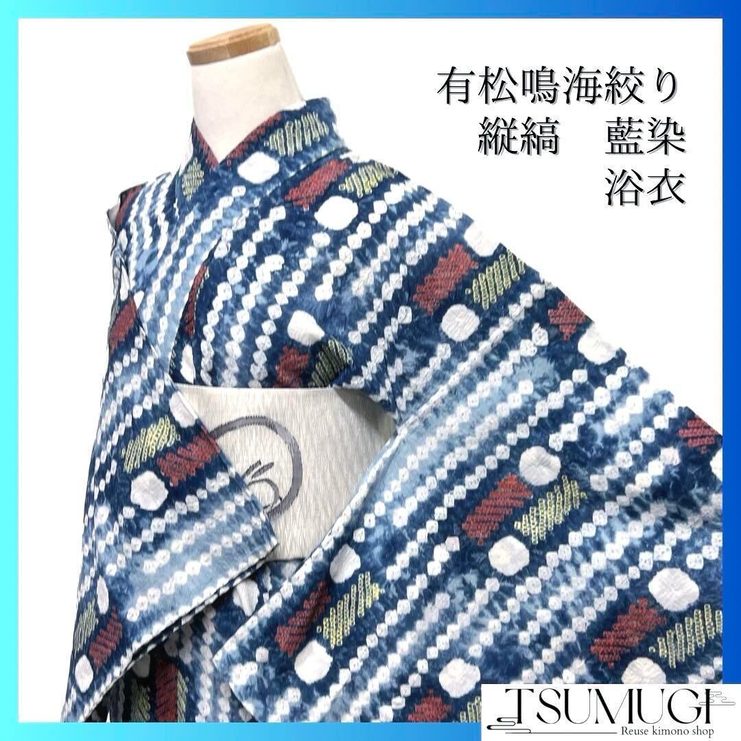 有松鳴海絞り縦縞と抽象模様の浴衣です。