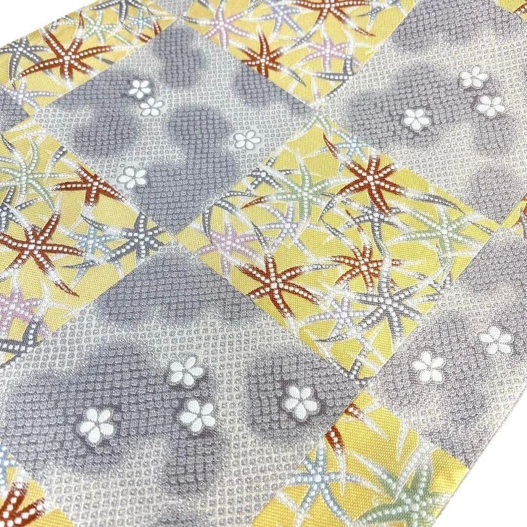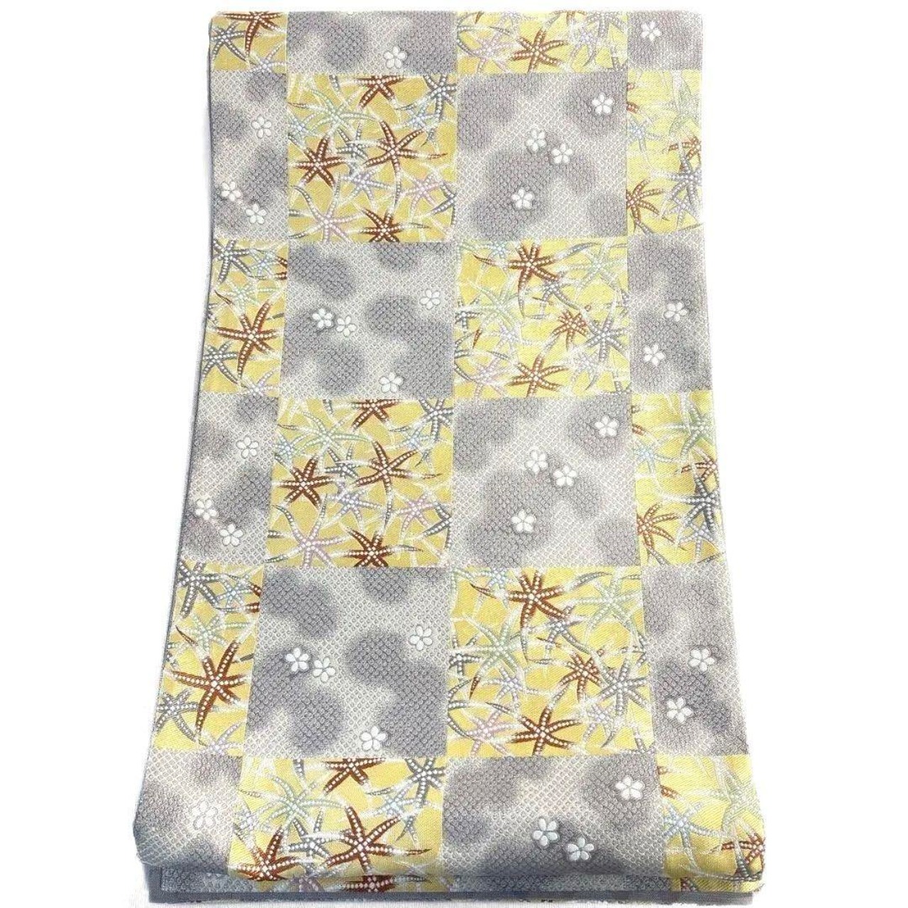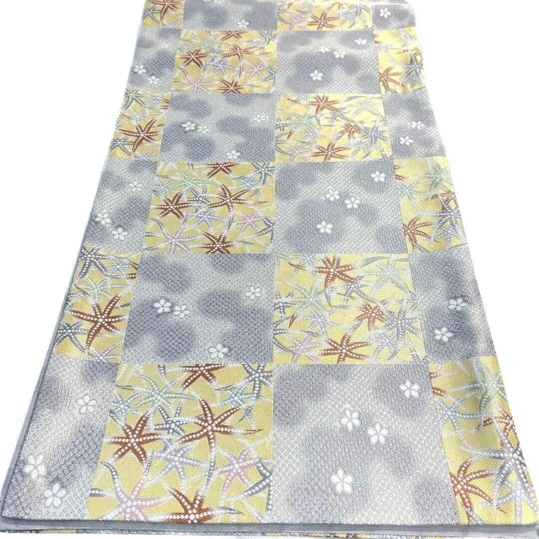 市松模様に小花やリーフ模様が織り出された袋帯です。