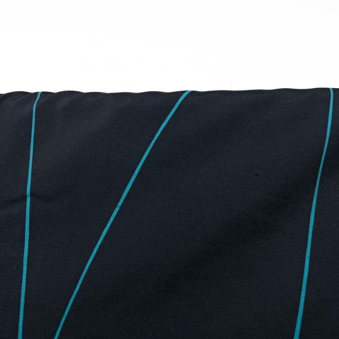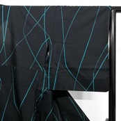 黒地にターコイズブルーの鮮やかな流線がデザインされた、シンプルながらも上質で華のある1着です。