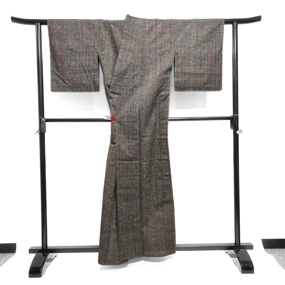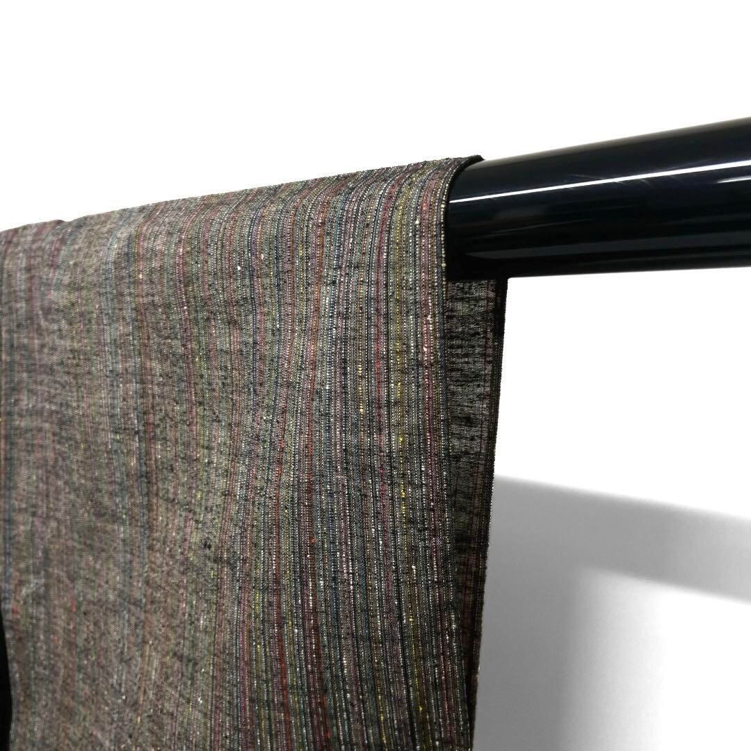 紬の地にカラフルに織られた縦縞の文様がお洒落なデザインの一着です。