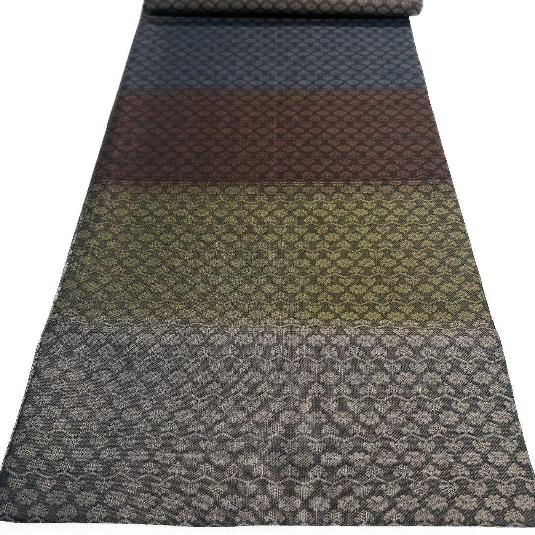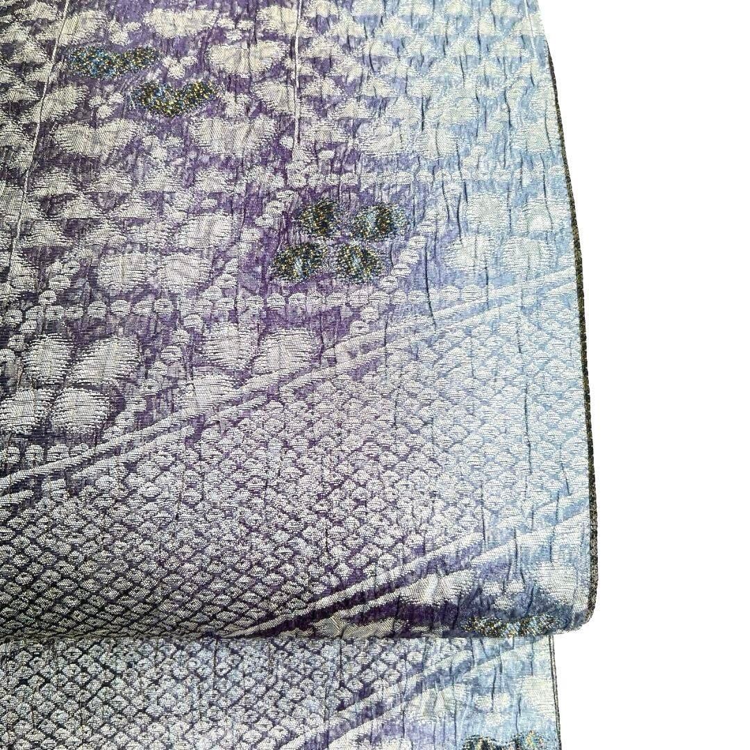 膨れ織りで花菱や鹿の子、鱗模様が織り出された袋帯です。